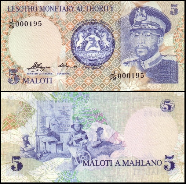 bankbiljetten / 002a / Lesotho / 5 Maloti / 1979 / Unc