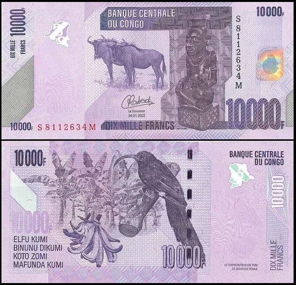 bankbiljetten / 103d / Congo Democratic Republic / Congo Dem. Republiek / 10000 Francs / 2022 / Unc