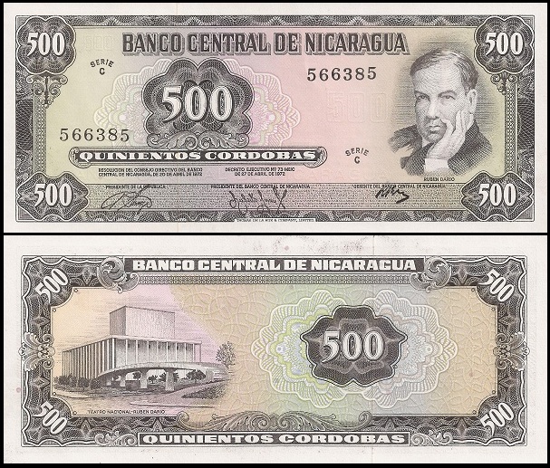 bankbiljetten / 127a / Nicaragua / 500 Cordobas / 1972 / Unc