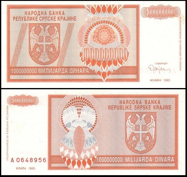 bankbiljetten / R17a / Croatia / Kroatie / 1.000.000.000 Dinara / 1993 / Unc