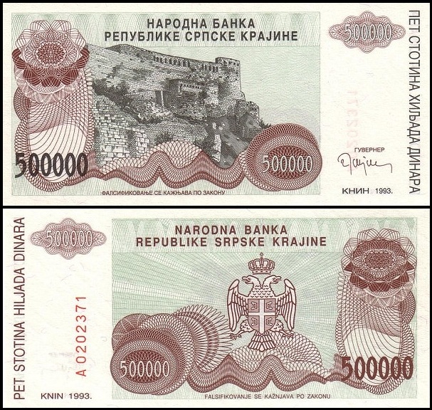 bankbiljetten / R23a / Croatia / Kroatie / 500.000 Dinara / 1993 / Unc