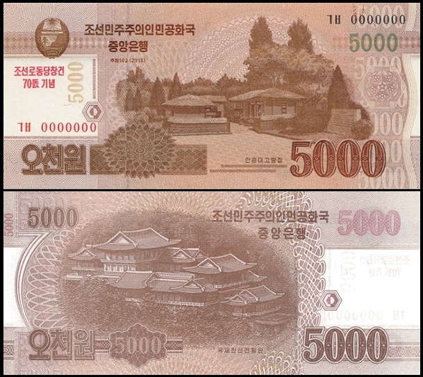 bankbiljetten / Cs019 / North Korea / Noord Korea / 5000 Won / 2013 / Unc