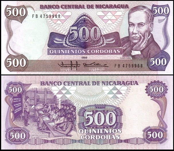 bankbiljetten / 155 / Nicaragua / 500 Cordobas / 1985 / Unc