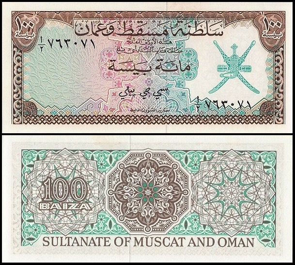 bankbiljetten / 001a / Oman & Muscat / 100 Baisa / 1970 / Unc