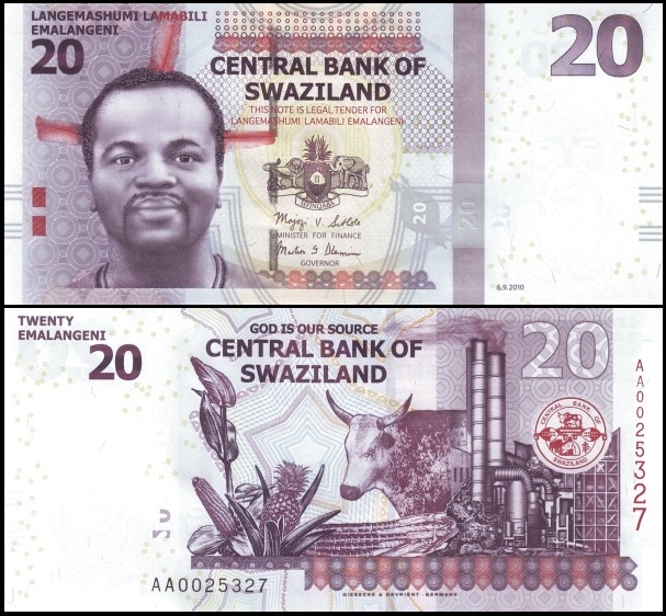 bankbiljetten / 037a / Swaziland / 20 Emalangeni / 2010 / Unc