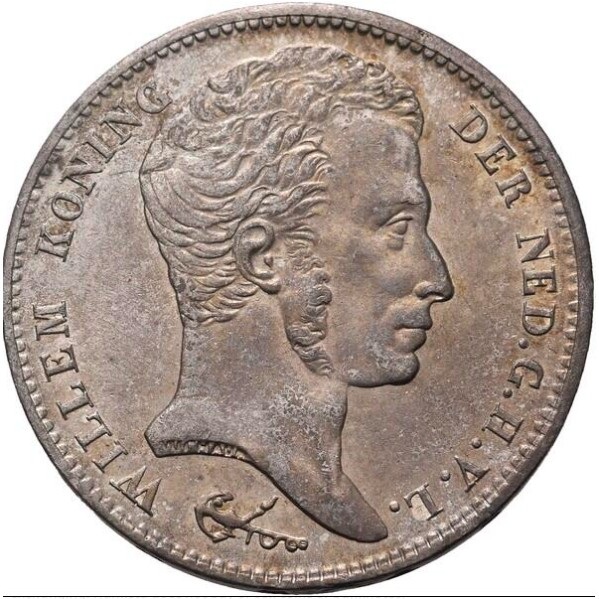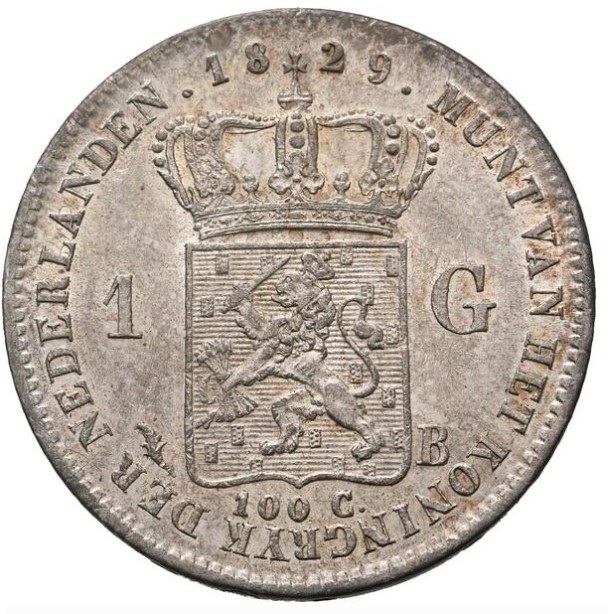 Nederland / 1829 B / Zilver / 1 Gulden / Willem I / Brandende Fakkel / Zf
