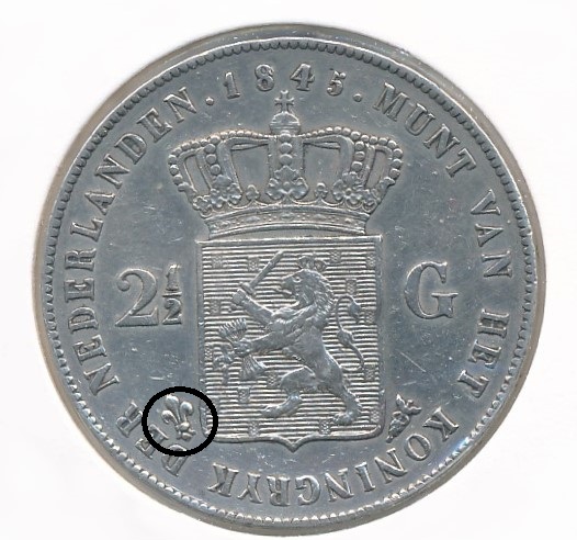 Nederland / 1845 / 2,50 Gulden / Zf / Lelie / Zilver 0.945 / Parel Op Band