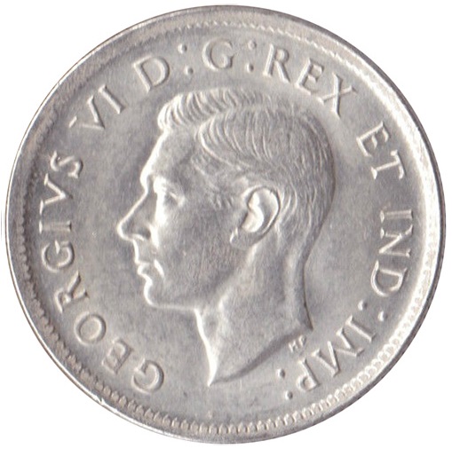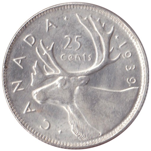 Worldcoins / Km 0035 / Canada / 25 Cents / 1939 / Fr / Zilver 0.800