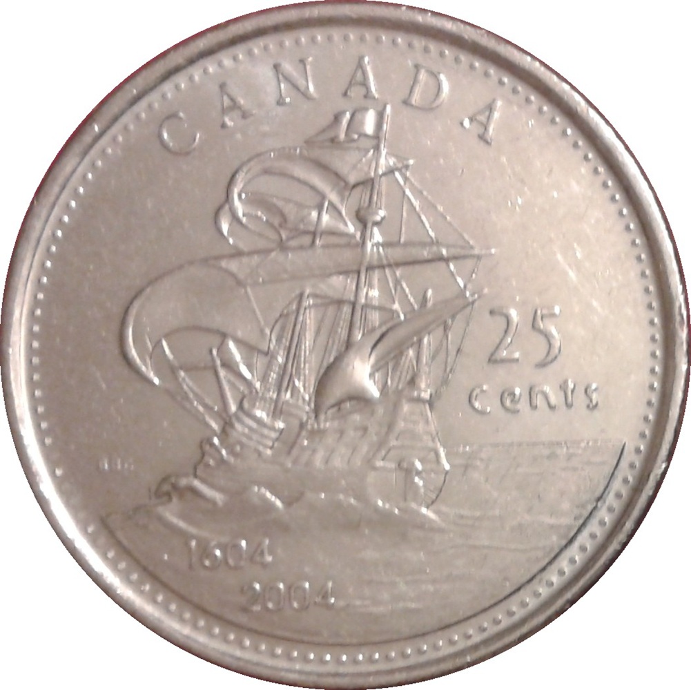 Worldcoins / Km 0628 / Canada / 25 Cents / 2004 / Unc / Saint Croix Island