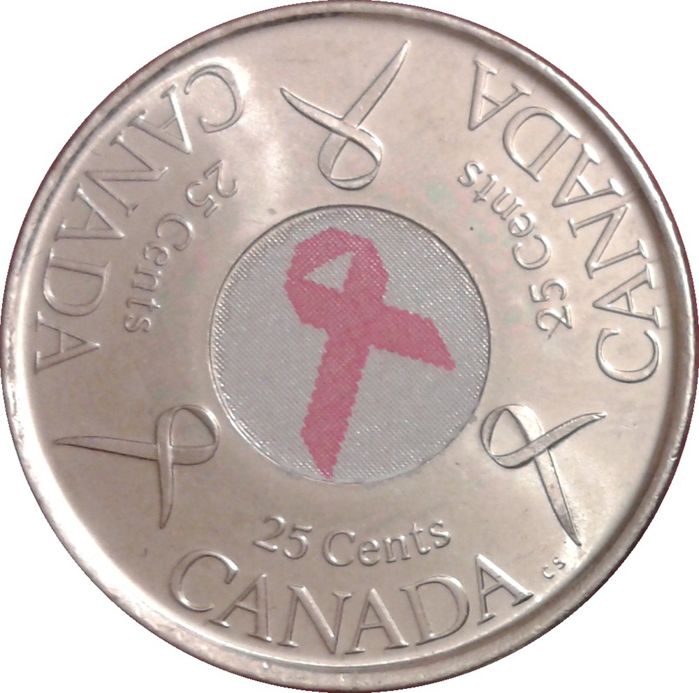 Worldcoins / Km 0635 / Canada / 25 Cents / 2006 / Unc / Pink Ribbon