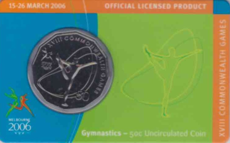 Worldcoins / Km 0774 / Australia / Australie / 2006 / 50 Cents / Commonweath Games / Gymnastics / Coincard / Unc