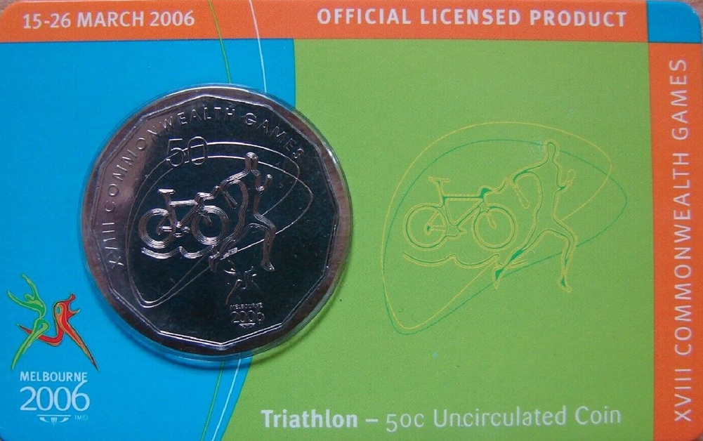 Worldcoins / Km 0778 / Australia / Australie / 2006 / 50 Cents / Commonweath Games / Triathlon / Coincard / Unc