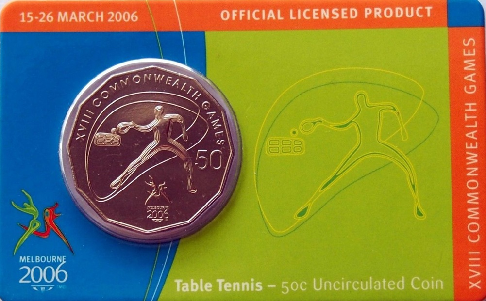 Worldcoins / Km 0780 / Australia / Australie / 2006 / 50 Cents / Commonweath Games / Table Tennis / Coincard / Unc