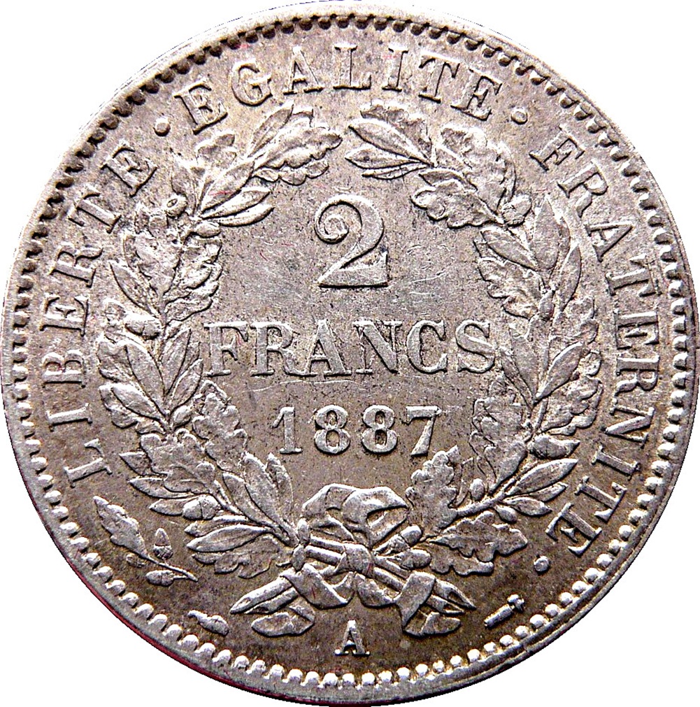 Worldcoins / Km 0817 / France / Frankrijk / 2 Francs / 1871 / Zf- / Zilver 0.835