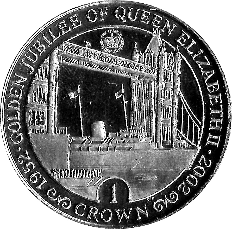Worldcoins / Km 1000 / Gibraltar / 5 Crown / 2000 / Unc / Golden Jubilee – Boat On Thames