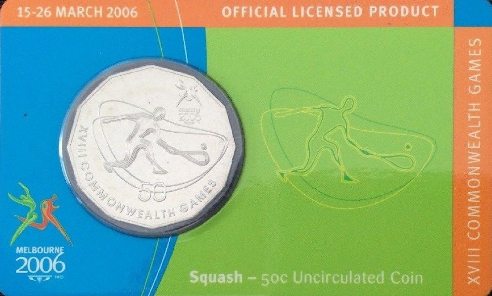 Worldcoins / Km 1001 / Australia / Australie / 2006 / 50 Cents / Commonweath Games / Squash / Coincard / Unc